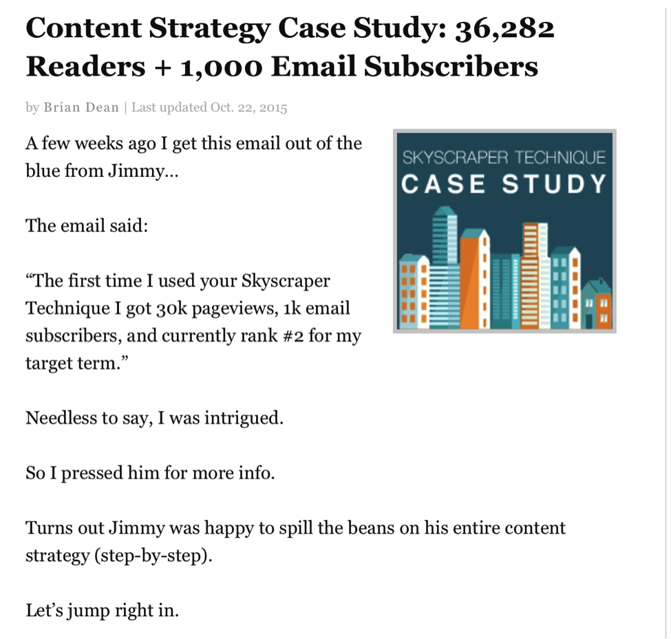 Brian Dean from Backlinko has successfully leveraged case studies to propel his blog towards success. Here is an example.