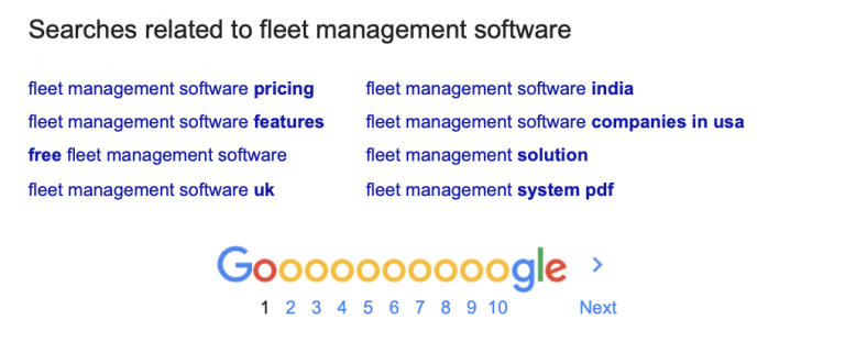 After noting down Google’s long-tail keywords suggestions, just scroll down to the bottom of the page until you find Google’s Related Searches.