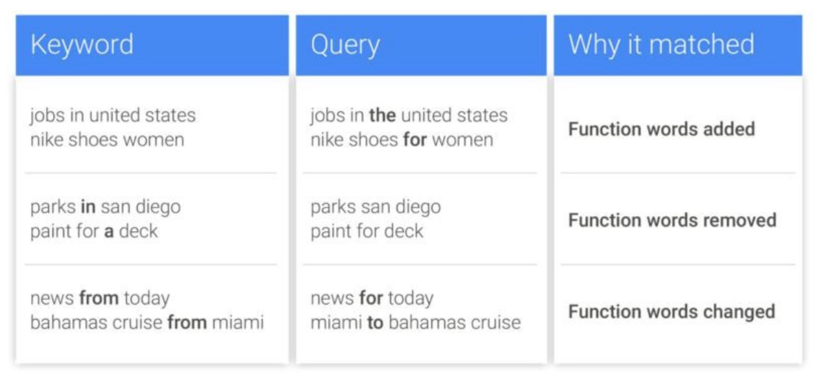After this recent change, Google AdWords will be able to change, replace, or ignore function words in the exact match queries.
